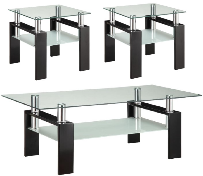 The Coaster® Dyer 3-Piece Glass Top Occasional Table Set features a sleek design with clear glass tops paired with chrome and black bases. This set combines modern aesthetics with sturdy construction, offering both style and practicality for contemporary living spaces.Read More