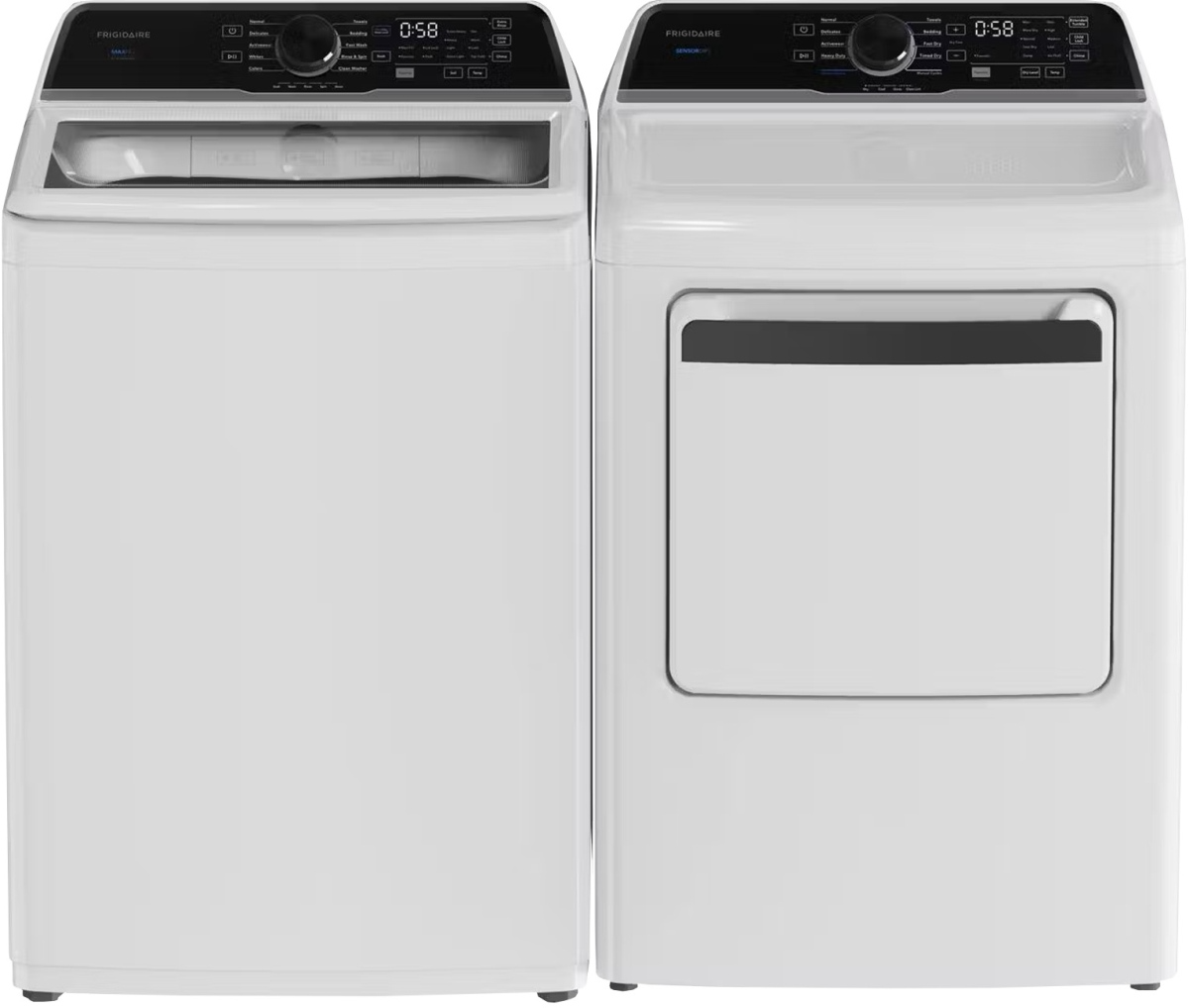 Frigidaire® White Top Load Washer and Electric Dryer Laundry Pair with 4.4 Cu. Ft. Agitator Top Load Washer and 7 Cu. Ft. White Front Load Electric Dryer.Read More