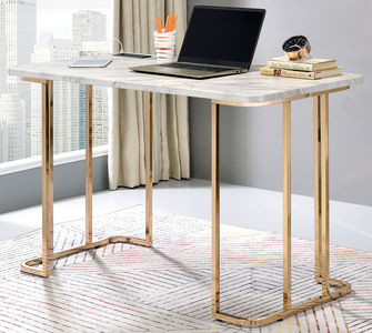 A plating process is used to finish the sturdy steel frame with a beautiful golden hue, while the faux marble table top is durable and easy to maintain. A built-in USB and power outlet plug allows for continued creativity and productivity in the convenience of your own home office.Read More