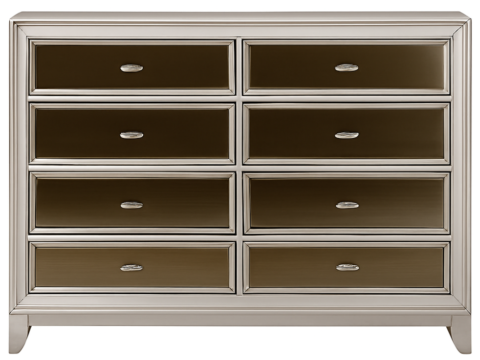 Gold-tinted mirror in drawer panels
