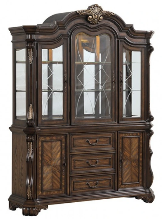 The Furniture of America® Leovanni 2-Piece Dark Brown Hutch and Buffet Set combines elegant dark brown finishes with functional storage. Perfect for dining rooms, it features ample space for dishes and decor, offering both style and practicality with its sophisticated, sturdy design.Read More