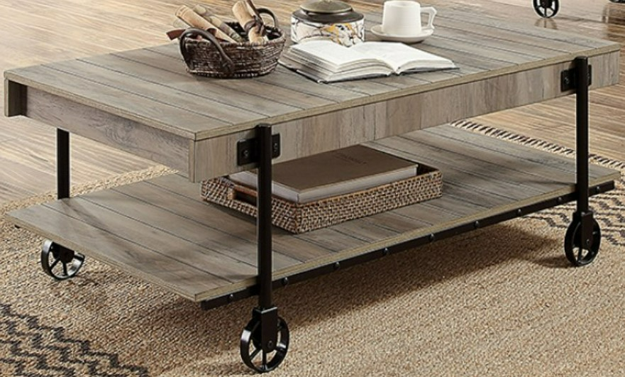 This piece is a crafty combination of barnyard inspiration and industrial details. The black metal frame pairs beautifully with the replicated wooden table top and shelves. Designed to look like slats, these panels are finished in a warm natural tone. Caster-like wheels support the frame, giving it a unique look.Read More