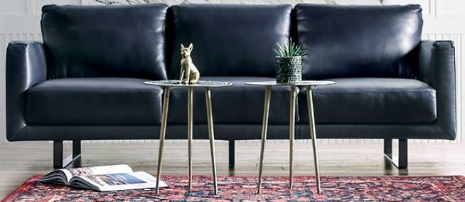 From its simple and essential lines to the undeniably luxe real Italian leather, the Mezzanotte is designed for the bold and daring. Take your place and sit comfortably upon welted box cushions cradled between two track arms, all upholstered in majestic midnight blue--a color so deep and exquisite.Read More