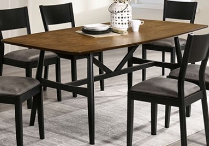 This eye-catching set will bring a modern touch into your dining space. The thin single-panel top is warm and smooth in its antique oak finish, supported by round tapered legs. Staying true to any mid-century modern piece, the legs are angled and so are the chair backs, contoured and painted in black.Read More