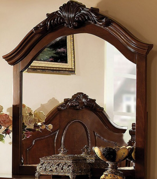 Add elegance and comfort to your home. The romantic simplicity of this traditional mirror transforms any bedroom. It is beautifully crafted of solid wood and veneer along with a brown cherry finish.Read More