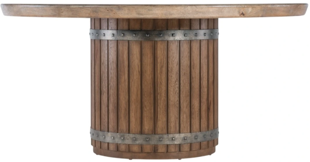 Inspired by the casual wine country lifestyle, the 62-inch-round Vineyard Row dining table has a wine-barrel-shaped base and a two-tone finish combining the light-and-airy Sonoma on the top and the robust napa finish on the base, both over pecky hickory wood.Read More