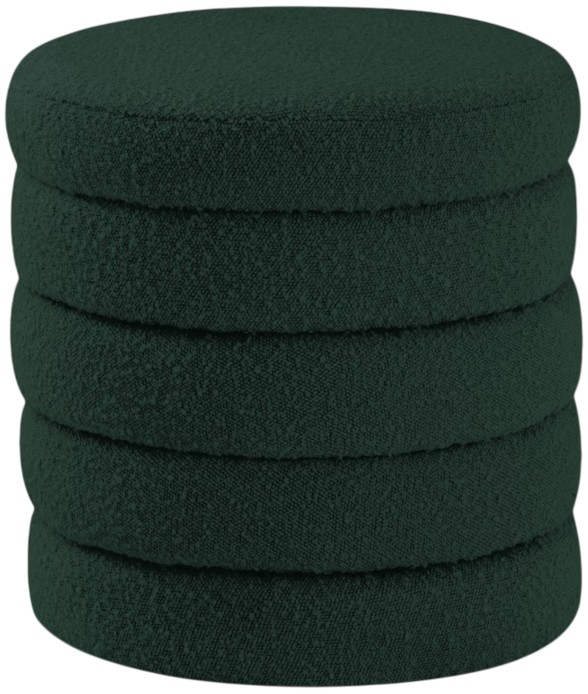 Liven up your living space with this Aphia green boucle fabric ottoman/stool from Meridian Furniture. Featuring rich green boucle fabric upholstery, this ottoman offers softness to the touch and style to the eye. Deep channel tufting gives the appearance of multiple layers stacked together.Read More