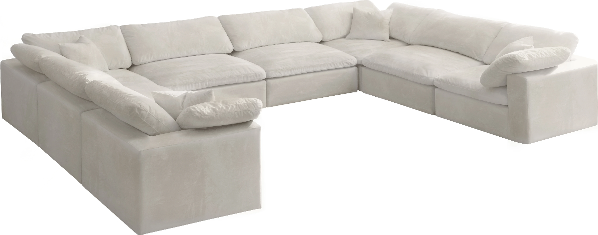 Bring home this Cozy 8-piece sectional for a fresh new look. Embrace casual elegance with this Cozy velvet cloud-like comfort modular fiber-filled seating option. Handsome from all angles, this piece features soft cream velvet upholstery to make it an easy fit in any room.Read More