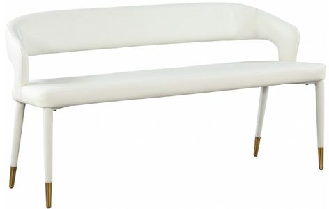 Enjoy extra seating space in your home with this Destiny white leather bench. Its soft, leather upholstery offers coziness while sitting, ensuring you and your guests are always comfortable. A rounded, open back provides additional comfort as well as style.Read More