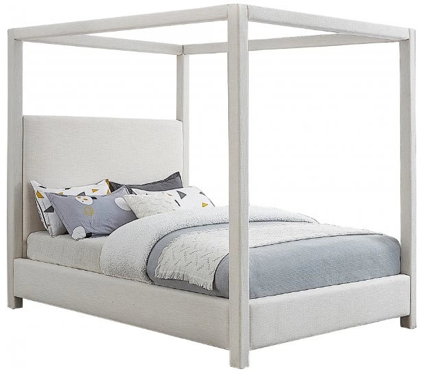 Get plenty of Z's when you sleep in this Emerson cream linen textured fabric queen bed. This canopy bed is fit for a queen, with four posts providing a luxurious frame for your mattress. Its mid-century modern design and rich cream linen textured fabric gives the bedframe a cozy feel.Read More