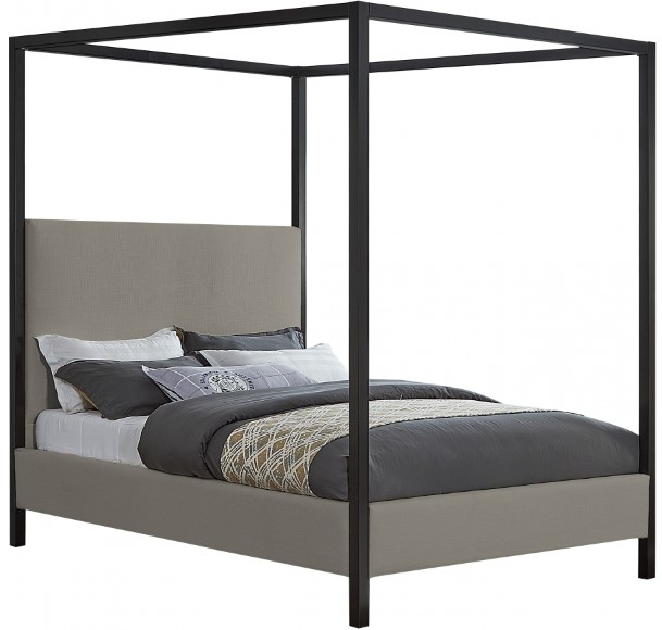 Feel like royalty when you drift off to dreamland from the confines of this James bed. This lovely bed offers a steel canopy for sturdy durability and resilience, its matte black finish an elegant contrast to the grey linen-like polyester fabric upholstery covering the bed’s headboard and sides.Read More