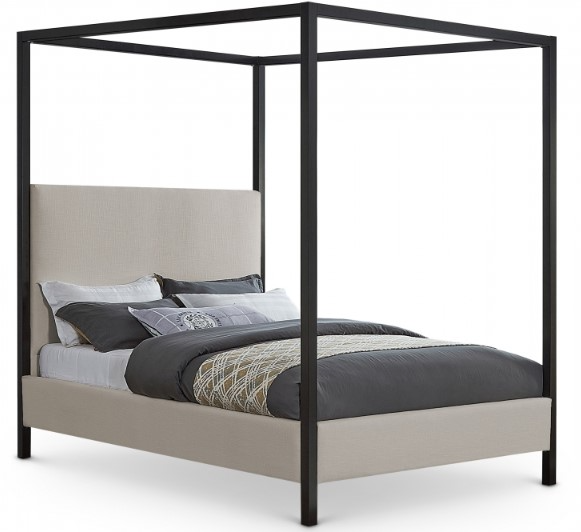 Feel like royalty when you drift off to dreamland from the confines of this James bed. This lovely bed offers a steel canopy for sturdy durability and resilience, its matte black finish an elegant contrast to the beige linen-like polyester fabric upholstery covering the bed’s headboard and sides.Read More