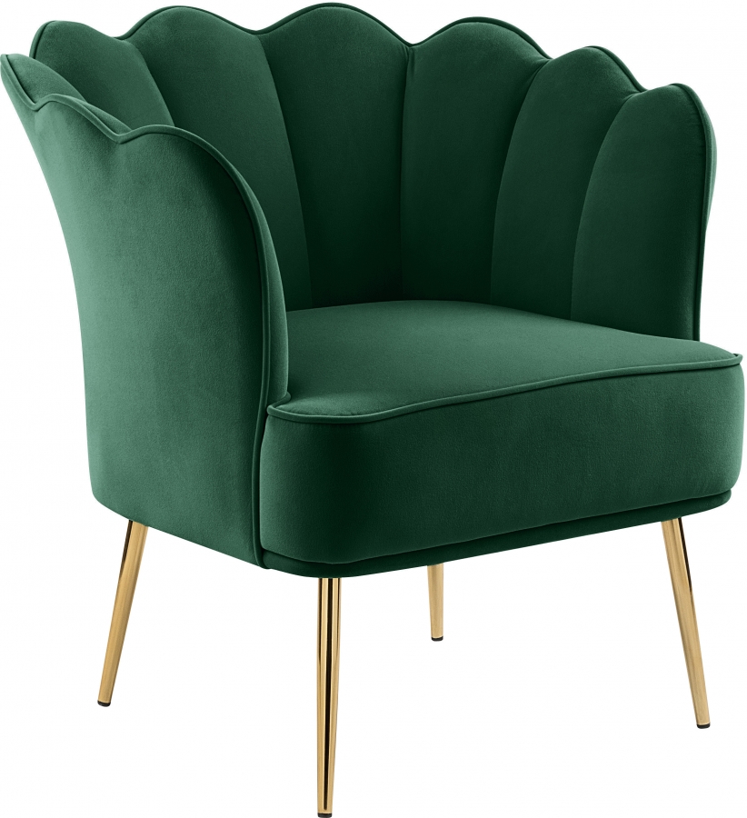 Elegant and eye-catching, the stunning green velvet Jester Accent Chair from Meridian Furniture is the perfect addition to any space.