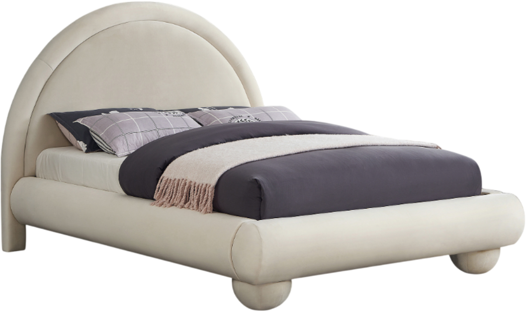 Transform your bedroom with the bold and sophisticated charm of the Madrid cream velvet upholstered king bed. Inspired by classic Art Deco design, this bed showcases a striking arched headboard and rounded edges for a unique, sculptural look.Read More