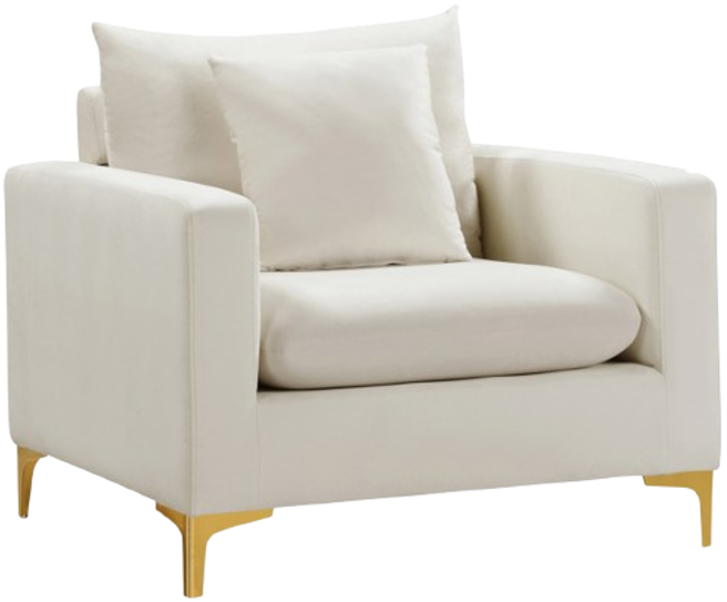 Curl up with a good book from the welcoming confines of this Naomi Cream Velvet Chair. The color of this chair adds a bold touch to your decor and shakes up otherwise neutral color schemes. Plush velvet material feels cozy and comfortable against your skin, while deep seat cushions provide lots of room for you.Read More