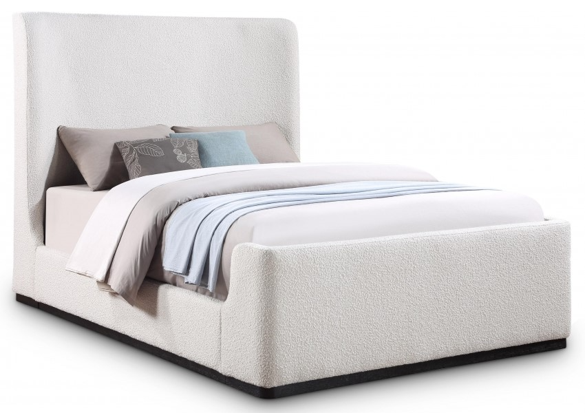 Make a bold statement with this stunning Oliver queen-size bed from Meridian Furniture. Its contemporary design is comprised of rubber wood with a solid wood black wire brush finish, upholstered with rich cream boucle fabric, giving it an elegant appearance.Read More