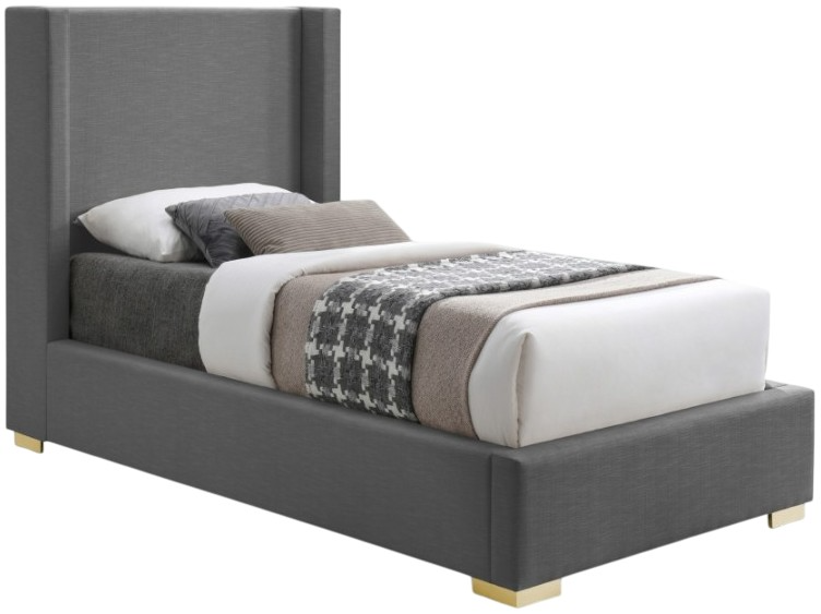 Make a big impression in the bedroom with this twin-size Royce linen textured bed. A wingback headboard is the star of the show here, with its extra height adding an element of drama to this exceptionally crafted bed. The headboard, sides and footboard of this Royce bed are covered in rich gray linen textured fabric.Read More