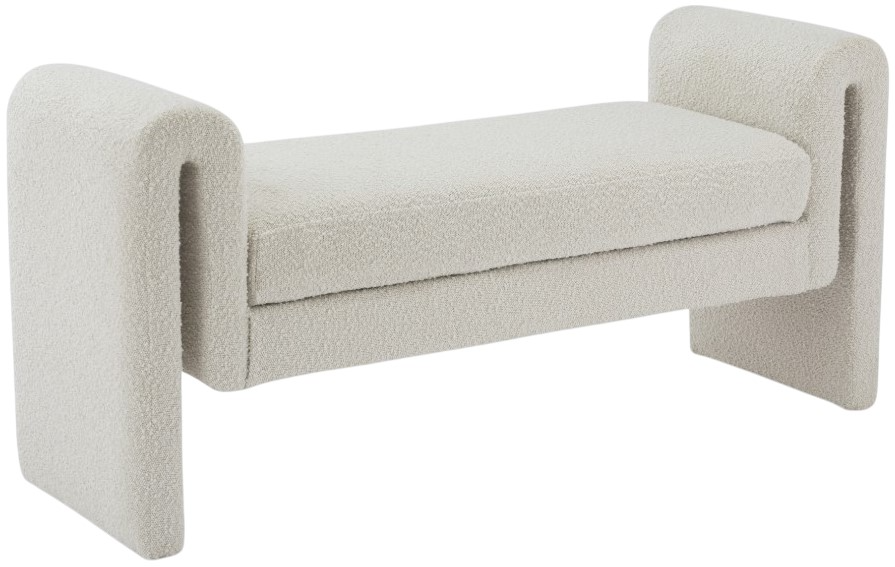 Lend a contemporary touch to your home with this cream boucle bench from Meridian Furniture's Stylus collection. Featuring a unique design upholstered in rich cream boucle fabric, this bench is as original as it is comfy. Curved arms provide a resting place so your arms won't get tired while you sit.Read More
