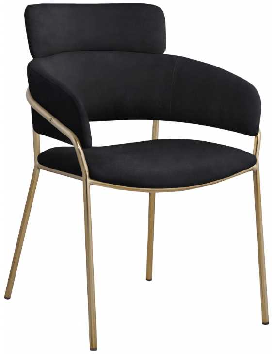 This lovely chair is stunning on its own, with its luxurious black velvet upholstery that feels soft and welcoming to the body atop heavily padded back and seat cushions. The chair’s brushed brass metal frame adds to its modern flair.Read More