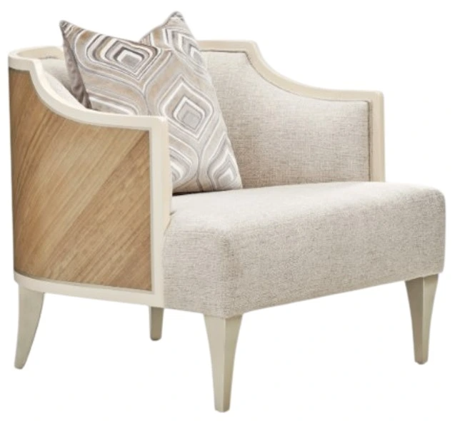 Combines luxurious comfort with elegant design. Featuring flax-toned upholstery and a rich brown wood frame, it showcases a timeless style. Gently curved arms and polished detailing make this versatile chair a sophisticated addition to living rooms, bedrooms, or any seating area.Read More