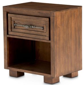 Nightstand featuring a solid wood top, a metal accent knob pull, and 1 shelf with a Rustic Ranch finish.Read More