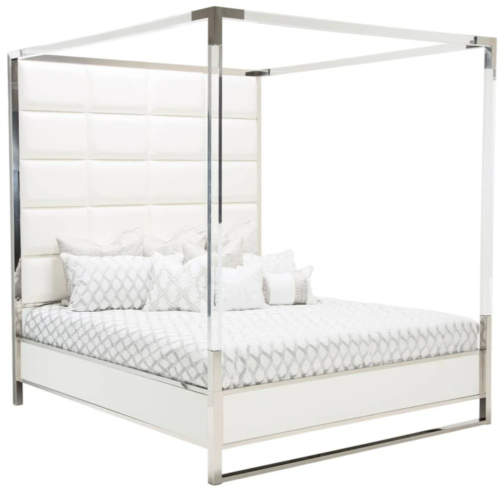 Need a bedroom makeover today? Glamorous and contemporary, this State St. canopy bed is an instant bedroom centerpiece guaranteed to transform your room. Eye-catching acrylic posts and glossy finishes instantly brighten any space, while giving you a clean look that's still luxurious.Read More