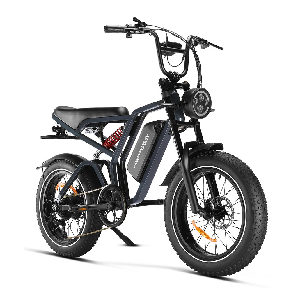 Upgraded for speed, range, and maneuverability, the HappyRun G60 Pro 1000W moped e-bike is an enhanced version of the G60. It features a sleek black design and adjustable speed settings from 1 to 5. The upgraded 25Ah high-capacity battery delivers a range of 80+ miles on a single charge. With a powerful 1000W motor (up from 750W on the G60) peaking at 2000W, this fast e-bike can hit a top speed of 36 mph. Thanks to its 4-inch all-terrain fat tires, it’s ready for both city commutes and suburban adventures. Combining versatile handling with superior performance, it effortlessly tackles both streets and rugged trails—bringing the freedom and thrill of the ride.Read More